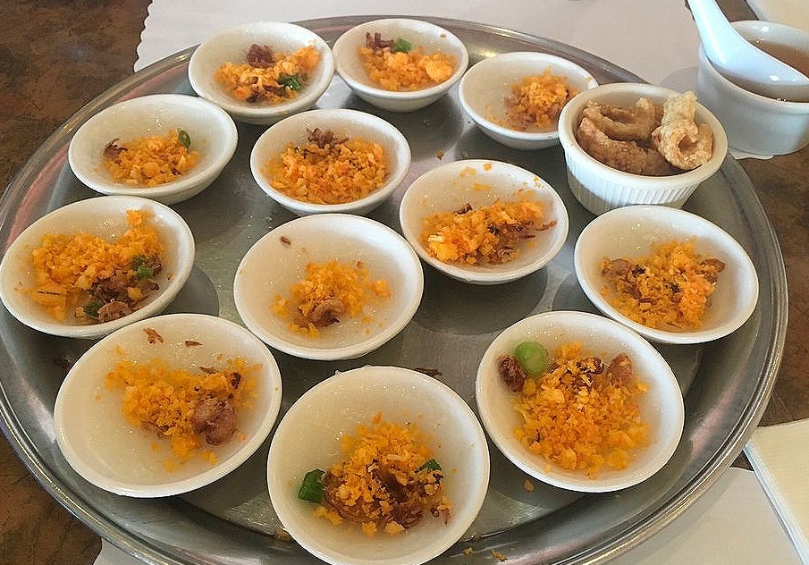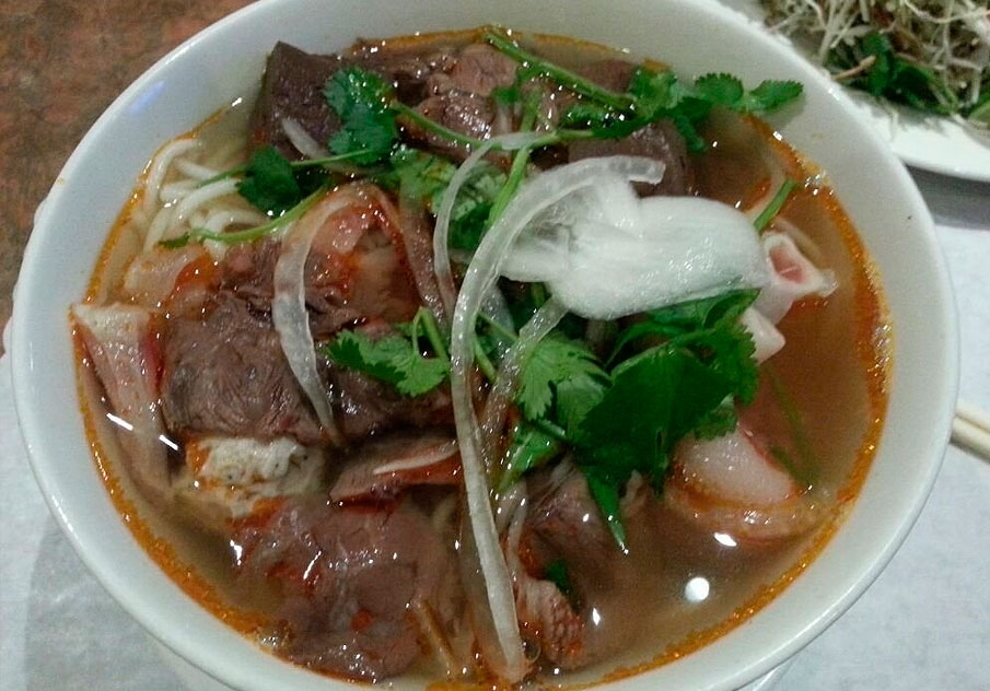 This popular restaurant offers Hue style Vietnamese dishes and is known for their banh beo and bun bo hue. The spacious restaurant features a large fish pond with rocky mountainous decor and a mural that adorns the back wall.